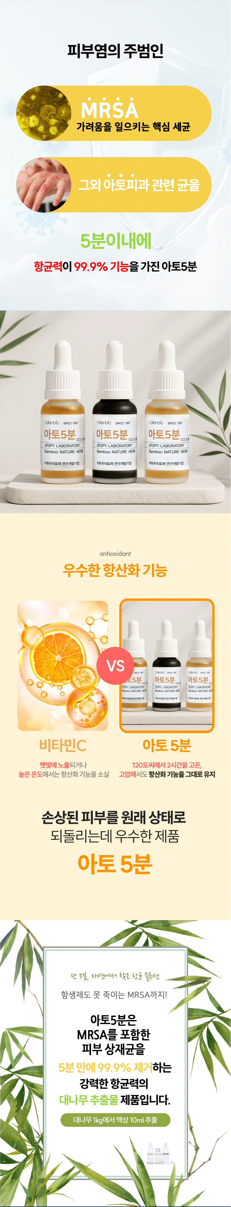 아토 5분은 높은 항균, 항산화 기능을 가진 제품입니다